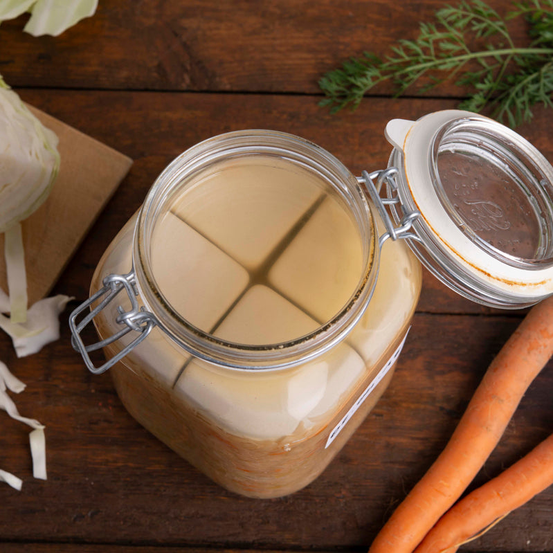 Dieses von SOFTCOREFOOD speziell entwickelte Fermentationsgewicht ist eine ausgezeichnete Wahl für alle, die in größeren Behältern fermentieren möchten. Mit einem großzügigen Gewicht von ca. 600g bleiben Ihre Fermente sicher unter der Flüssigkeit, was eine gleichmäßige Fermentation und optimale Ergebnisse sichert. In seiner Größe haben wir das Gewicht explizit an den Durchmesser von 2L Fido-Drahtbügelgläsern angepasst um eine maximale Abdeckung und gleichmäßige Beschwerung zu gewährleisten.
