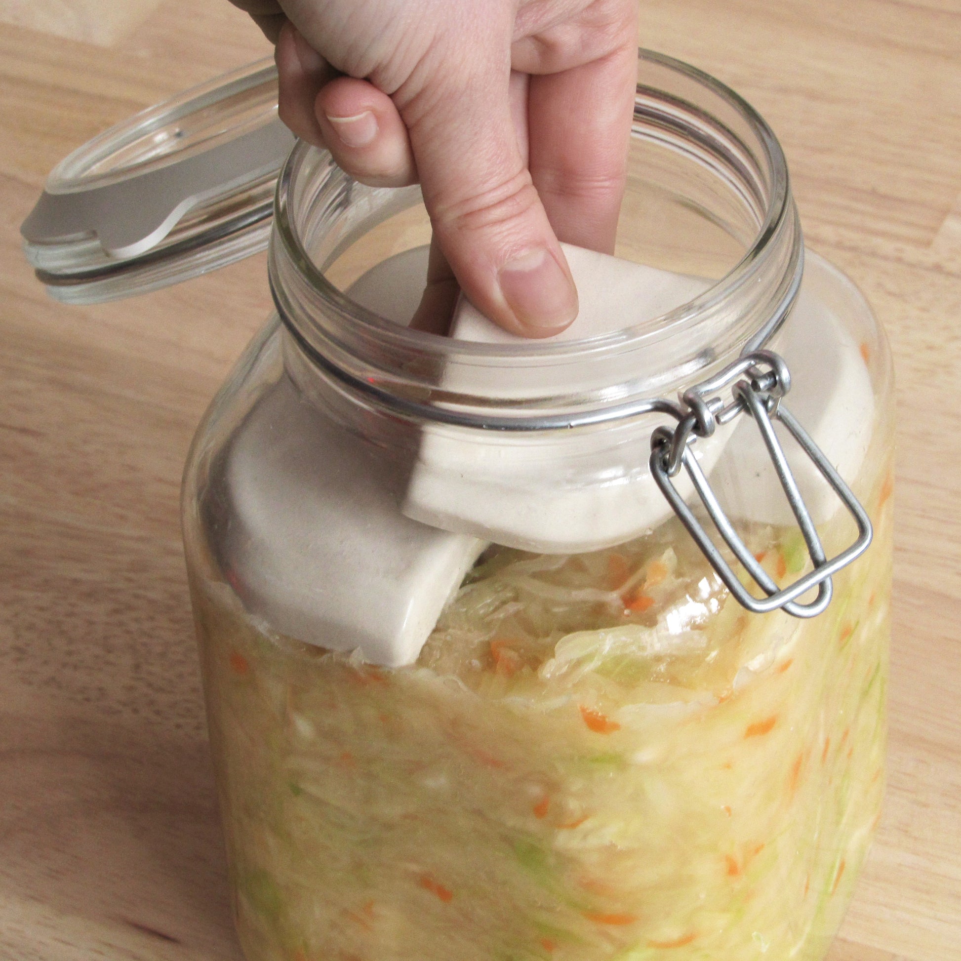 Durch die 4-Teilung des Gewichtes ist es möglich das Gewicht durch die 8,5cm breite Öffnung des Drahtbügelglases zu führen um im Glas die nahezu ganze Fläche abdecken zu können. Bitte beachten sie dabei: Die maximale Abdeckung ihres Fermentes geht jedoch zu Lasten der maximalen Füllhöhe. Das Gewicht lässt sich bei 2L Fido Gläsern nicht im sich verjüngenden oberen Bereich des Glases einsetzen. Für mehr Flexibilität empfehlen wir alternativ ein rundes, einteiliges 8cm Gewicht, mit dem sie alle Drahtbügelgläser mit gängigen 8,5cm Öffnung komplett befüllen können.