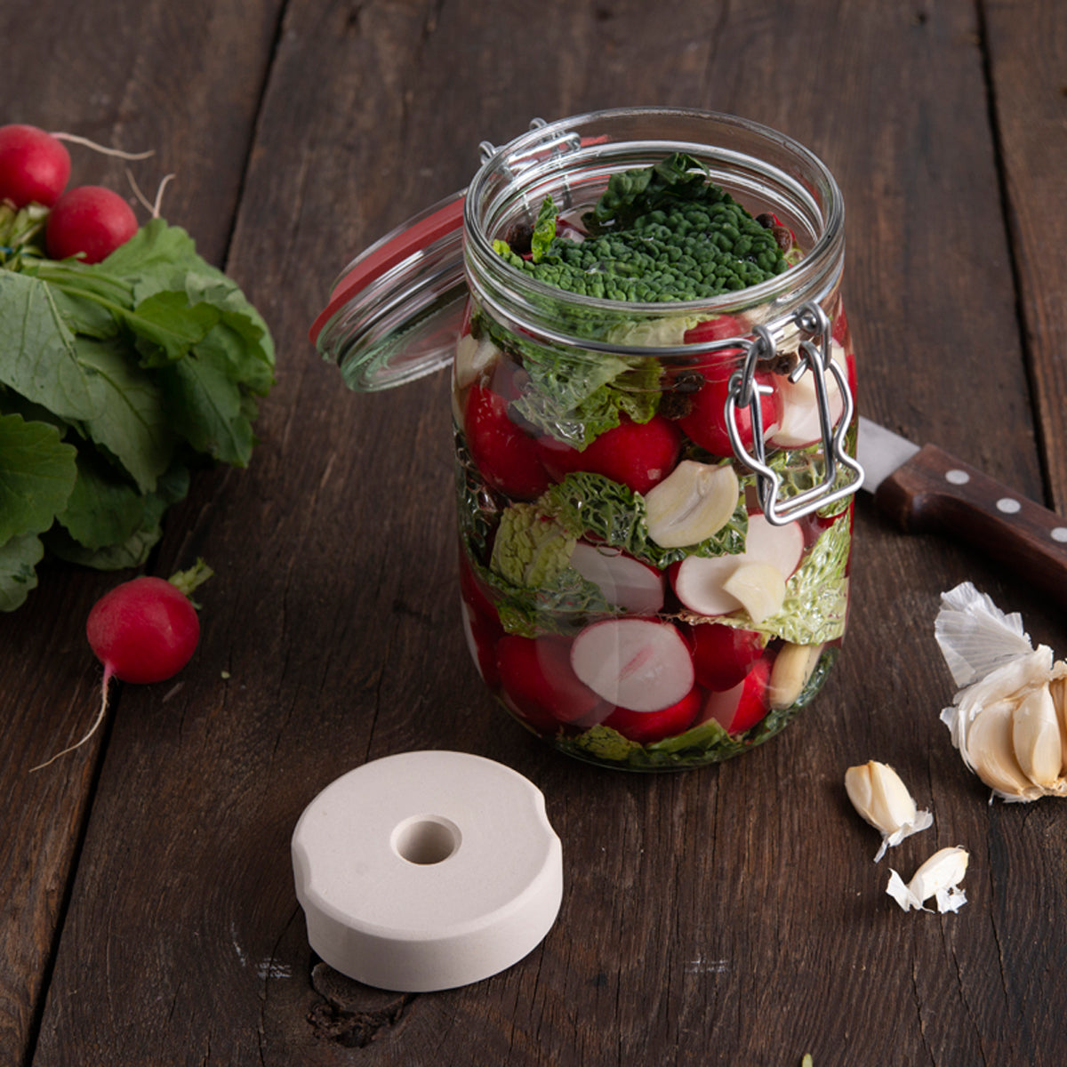 Mit einem Mindestgewicht von 180g bleiben Ihre Fermente sicher unter der Flüssigkeit, was eine gleichmäßige Fermentation und optimale Ergebnisse sichert. Mit einem Durchmesser von 7cm ist das Gewicht für den Einsatz in Ball Mason-wide mouth Gläser die erste Wahl. Zudem ist es auch für eine Vielzahl weiterer Gläser mit einer Öffnung von mind. 7,5cm bestens geeignet.