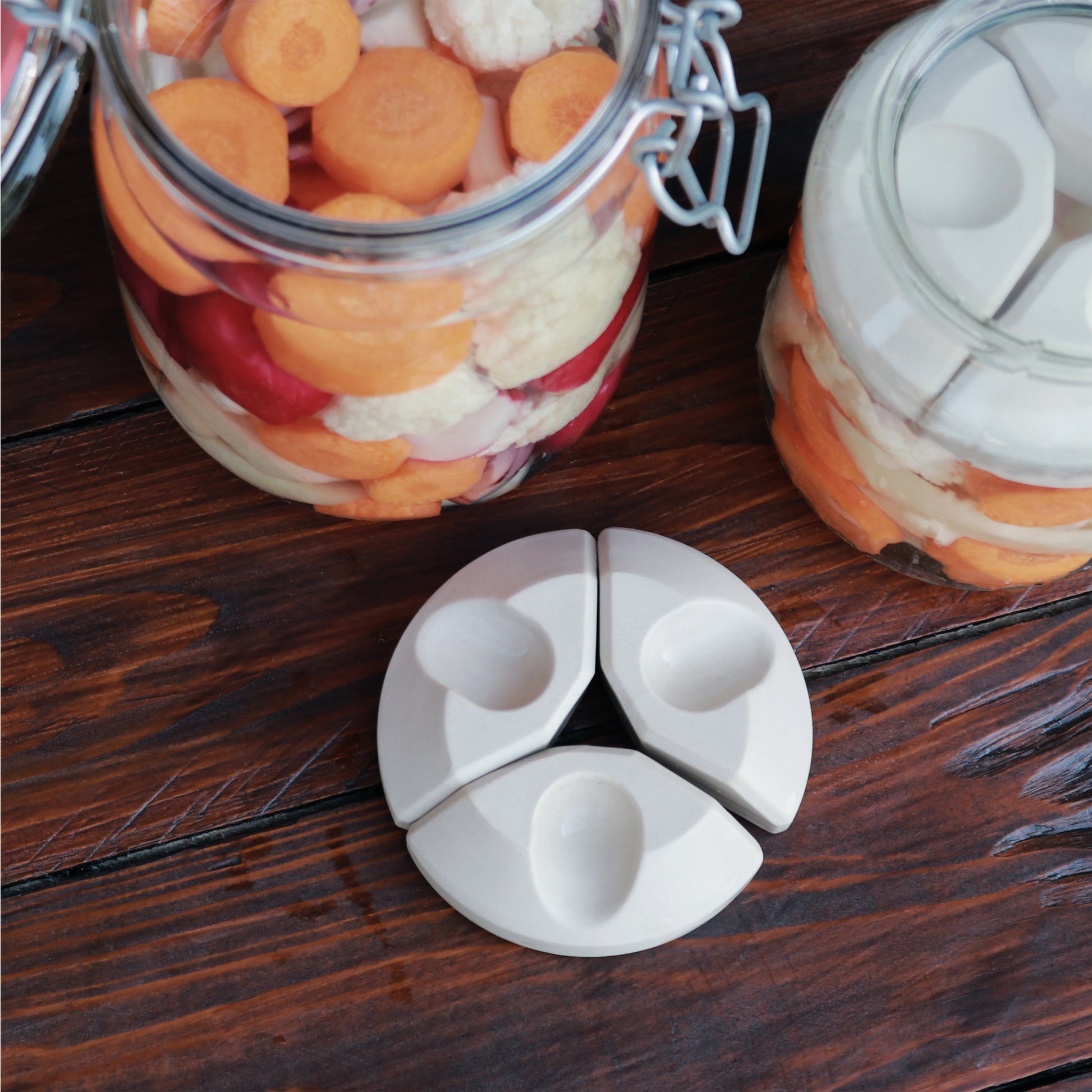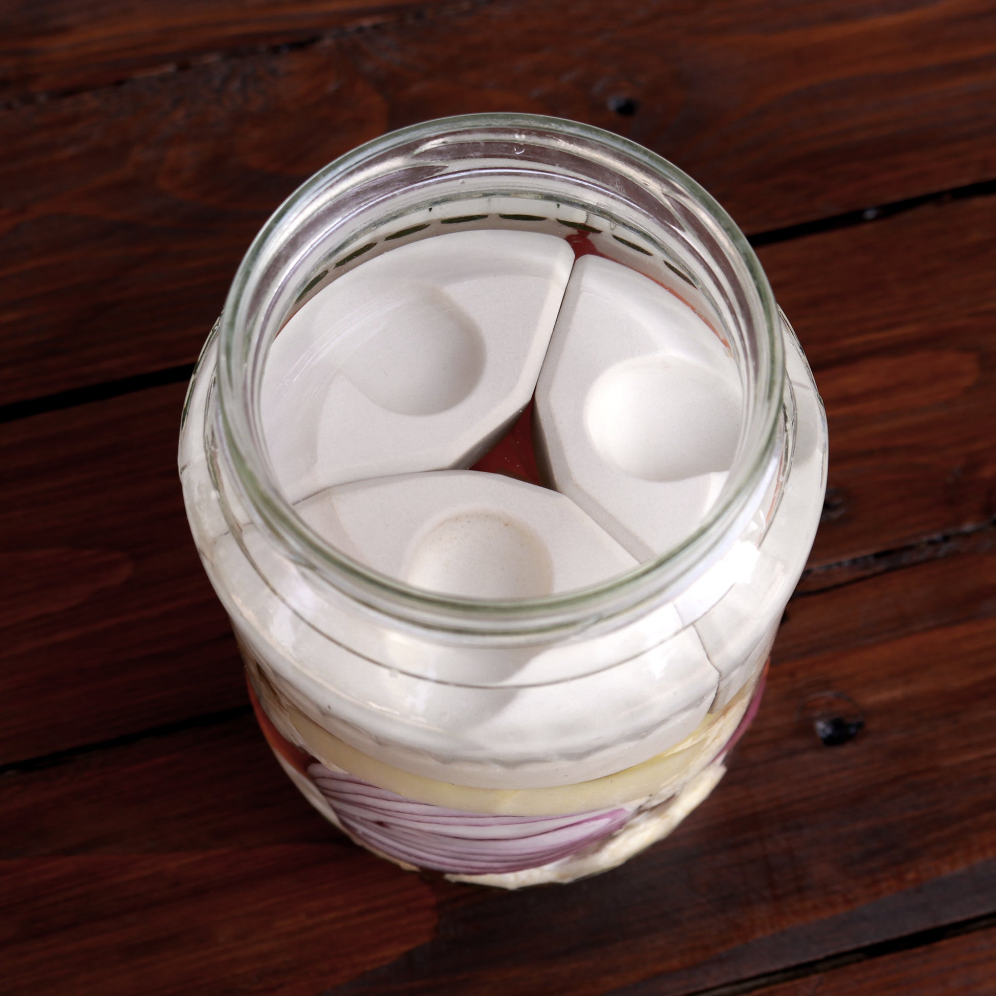 Dieses von SOFTCOREFOOD speziell entwickelte Fermentationsgewicht ist eine ausgezeichnete Wahl für alle, die sich erstmalig mit der Kunst der Fermentation vertraut machen möchten. Mit einem Mindestgewicht von 240g bleiben Ihre Fermente sicher unter der Flüssigkeit, was eine gleichmäßige Fermentation und optimale Ergebnisse sichert. Durch seine 3-teilige Konstruktion kann es mit verschiedenen Gläsern unterschiedlicher Durchmesser und Öffnungen verwendet werden. Daher ist es besonders nützlich für Gläser mit kleineren Öffnungen, wie zum Beispiel klassische Gurkengläser mit einer Öffnung von 6,7 cm.